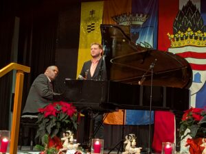 der Weihnachtsmarkt liegt schon zwei Wochen zurück. Es war ein erfolreicher Markt, auch wenn die Einnahmen am Sonntag wegen des Regens etwas hinter denen vom Samstag zurückblieben. Wir alle genossen die Zeit mit unseren Gästen. Das Wochenende bot viele Gelegenheiten zu interessanten Gesprächen, gemütlichem Zusammensein und Vertiefen von Freundschaften. Begeistert konnte man den Musikern aus Aberystwyth lauschen: Alan Phillips und Jacob Williams mit ihren Kronberger Bläser-Freunden und dem „Special Guest“ Mo Pleasure. Er faszinierte mit seinem virtuosen Spiel auf dem Flügel in der Stadthalle und dem Keyboard auf dem Weihnachtsmarkt. Begleitet wurde er von dem inzwischen in Kronberg bekannten und beliebten Sänger Gwi Jones.