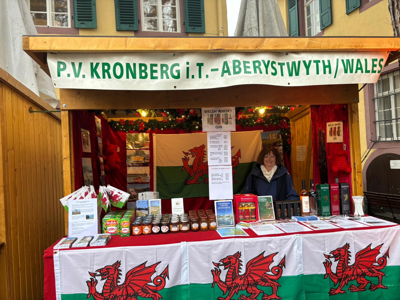 der Weihnachtsmarkt liegt schon zwei Wochen zurück. Es war ein erfolreicher Markt, auch wenn die Einnahmen am Sonntag wegen des Regens etwas hinter denen vom Samstag zurückblieben. Wir alle genossen die Zeit mit unseren Gästen. Das Wochenende bot viele Gelegenheiten zu interessanten Gesprächen, gemütlichem Zusammensein und Vertiefen von Freundschaften. Begeistert konnte man den Musikern aus Aberystwyth lauschen: Alan Phillips und Jacob Williams mit ihren Kronberger Bläser-Freunden und dem „Special Guest“ Mo Pleasure. Er faszinierte mit seinem virtuosen Spiel auf dem Flügel in der Stadthalle und dem Keyboard auf dem Weihnachtsmarkt. Begleitet wurde er von dem inzwischen in Kronberg bekannten und beliebten Sänger Gwi Jones.